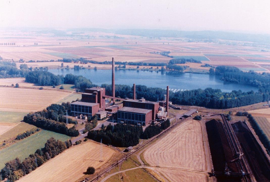 Wo heute mit einem der größten Solarparks Hessens Energie erzeugt wird, befand sich das Wölfersheimer Kraftwerk. Ab 1954 wurde hier Strom aus Braunkohle produziert. Insgesamt waren zwei Blöcke mit einer Leistung von jeweils 30 Megawatt (MW) in Betrieb. 1962 ging ein weiterer Block mit 64 MW ans Netz, so dass das Kraftwerk eine effektive Spitzenleistung von 124 MW erzielte. Insgesamt konnten somit über 250.000 Haushalte mit Strom versorgt werden.
