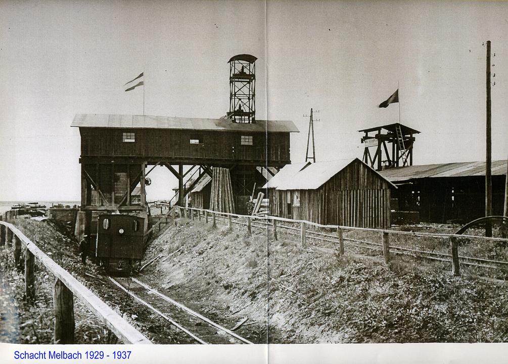 Im Schacht Melbach wurde in der Zeit von 1929 bis 1937 Braunkohle abgebaut. Insgesamt wurden hier 0,5 Millionen Tonnen Braunkohle abgebaut.