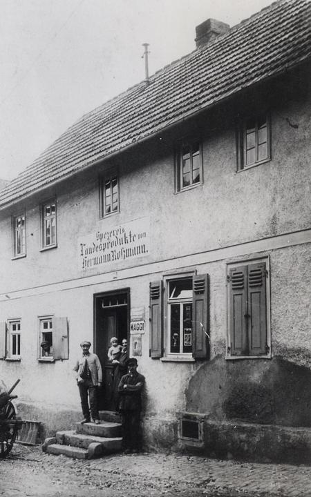 In diesem Haus wohnte die Familie Hermann Rossmann. 1933 lebten noch drei jüdische Familien, nämlich die beiden Familien Hermann und Julius Rossmann und der Metzger und Viehhändler Berthold Sonneborn mit 16 Personen in Wölfersheim. Hermann Rossmann war Spezerei- und Fruchthändler (Getreide). Durch die zunehmende Verfolgung bewogen, wanderten einige Familienmitglieder, etwa die beiden Töchter Sonneborn, aus. Letzter Anlass zur Flucht waren die grausamen Ausschreitungen beim Novemberpogrom 1938, bei dem SA-Leute und fast die gesamte Arbeitsschicht aus dem örtlichen Braunkohle-Kraftwerk (insgesamt ca. 150 Männer!) die jüdischen Männer Kaufmann und Julius Rossmann auf das Schlimmste misshandelt, die Wohnungen ihrer Familien völlig demolierten und Geschäftsbücher und Schuldscheine verbrannten. Der Ortsgruppenleiter E. hatte die Anweisung ausgegeben, "die Juden halbtot zu prügeln." Danach wurden von Einwohnern Wölfersheims die verwüsteten Wohnungen durchsucht und vollends geplündert. Weil dies selbst den nationalsozialistischen Behörden zu massiv war, wurden von einem Gemeindebediensteten die geraubten Sachen wieder eingesammelt. Angehörige der Familie Hermann Rossmann emigrierten nach Palästina/Israel, die Familien Sonneborn und Julius Rossmann in die USA. Die Brüder Kaufmann und Siegfried Rossmann mussten nach Friedberg und wurden von dort in KZ´s deportiert. 1939 lebten keine jüdischen Einwohner mehr im Ortsteil Wölfersheim. [Sebastian Göbel u. Eugen Rieß ]