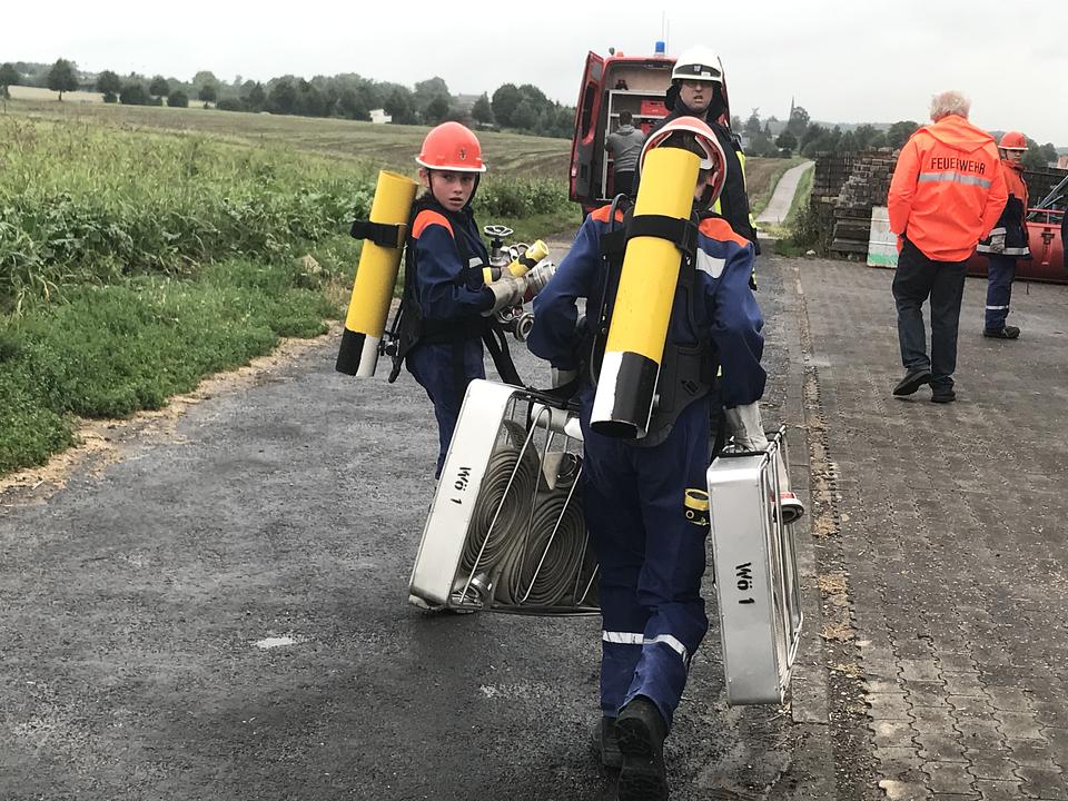 Am Freitagabend wurde das Matratzenlager bezogen, danach rückten die Kinder und Jugendlichen noch bis spät in den Abend zu von den Jugendwarten vorbereiteten "Einsätzen" aus. Nach einer kurzen Nachtruhe ging es dann weiter. Es mußten Feuer gelöscht werden, Personen gerettet und Hilfeleistungen erbracht werden. Dazwischen war, wie im echten Leben auch, ein Fehlalarm. Trotz einer tollen Bewirtung waren alle, die mitgemacht haben nach den fast ein Dutzend Einsätzen erschöpft.