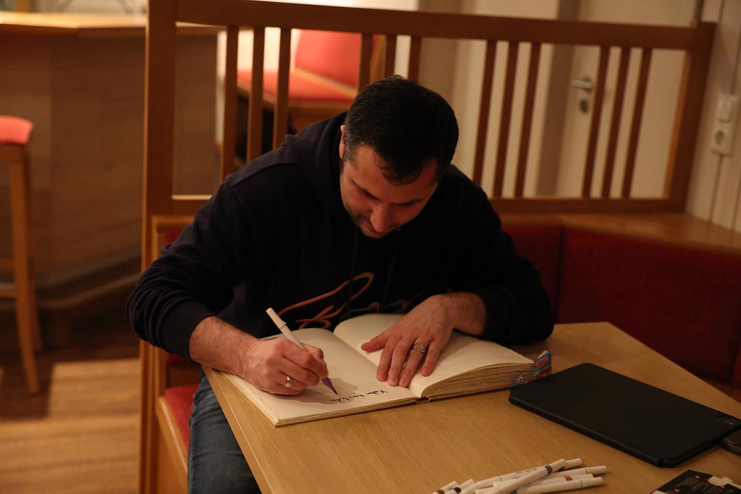 Das war ganz nach dem Geschmack des begeisterten Publikums, das oft aus dem Lachen nicht herauskam und mit spontanen Lachern und Zurufen sogar Ost aus dem Konzept brachte. Es spricht für den Hessen, dass er selbst diese kleinen „Aussetzer“ nutzte, um für noch mehr Begeisterung zu sorgen. „Auf sie hier vorne war ich nicht vorbereitet“, meinte er zu einem tränen lachenden Besucher in der ersten Reihe, um ein anderes Mal zu bekennen: „Ich bin jetzt hier komplett raus.“