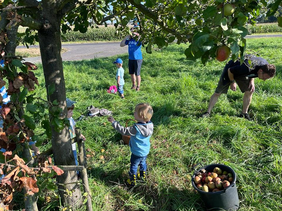 Bereits am Samstagmorgen waren hunderte Kinder mit Ihren Eltern auf den Streuobstwiesen in der Gemeinde unterwegs um gemeinsam Äpfel zu pflücken. Die Natur- und Vogelschutzgruppe übernimmt die Pflege verschiedener Streuobstwiesen. Gemeinsam mit den Ehrenamtlichen wurden verschiedene Flächen ausgewählt, an denen gepflückt werden konnte. Auch bei der Pflückaktion vor Ort unterstützten sie. So wurden einige Säcke mit Äpfeln gepflückt, die von den Mitarbeitern des Betriebshofes nach Berstadt gebracht wurden. Insgesamt sind rund 3 Tonnen zusammen gekommen.