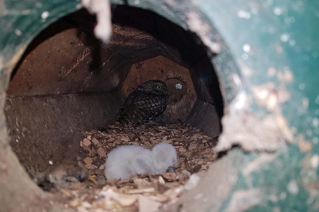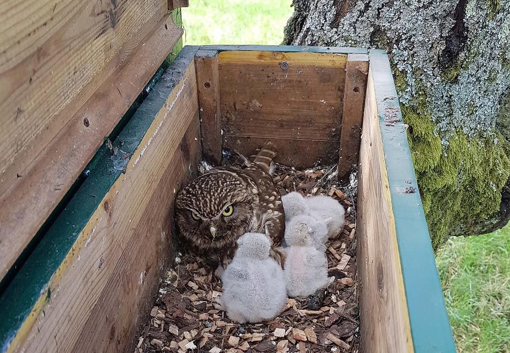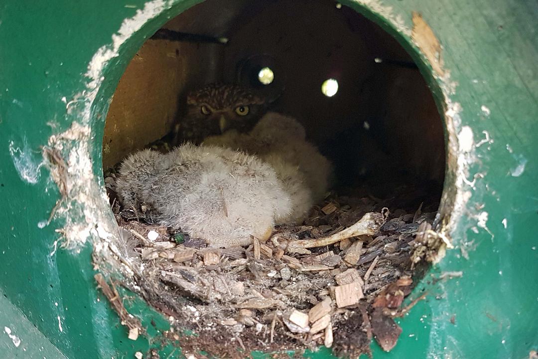 Nahrung: das ist weiterhin wahrscheinlich ein Problem. Die bevorzugte Nahrung des Steinkauzes sind Feldmäuse, aber auch Insekten und Regenwürmer. In den „guten Jahren“ haben wir immer wieder tote Mäuse als Nahrungsvorrat in den Röhren gesehen, die fehlten auch in diesem Jahr. Die Anzahl und Überlebenschancen der Jungvögel richtet sich stark nach dem Nahrungsangebot in ihrem Habitat.