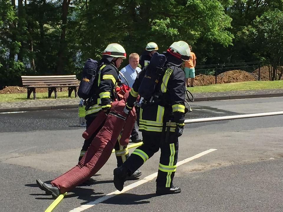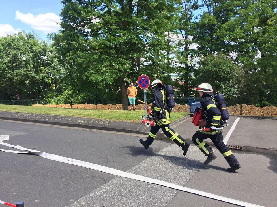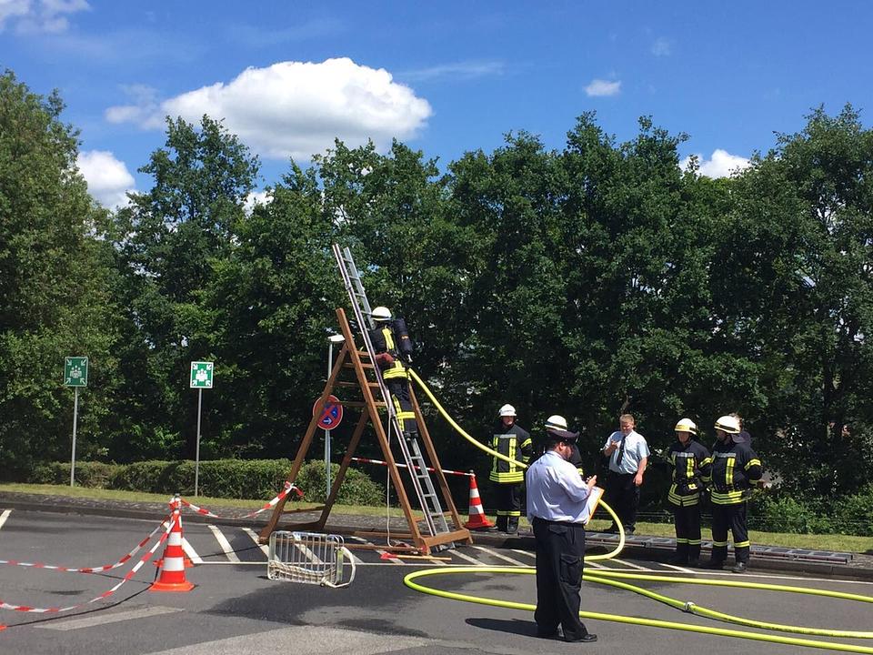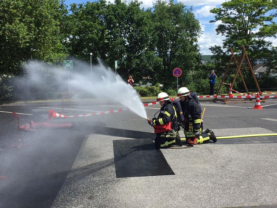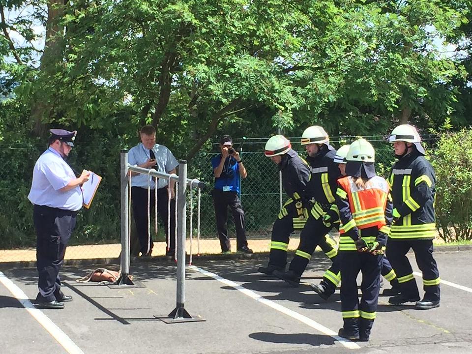 Nach Begrüßung der Mannschaften durch Übungsleiter Clemens Englmeier (RP Darmstadt) begannen die Übungen zunächst mit dem theoretischen Teil. Hierbei mussten Fragebögen mit 15 feuerwehrspezifische Fragen von je 6 Mannschaftsmitgliedern innerhalb von 10 Minuten beantwortet werden. Anschließend wurden praktischen Übungen abgenommen, bei denen ein Löschangriff mit Menschenrettung simuliert wurde. Direkt nach der Übung mussten noch 4 feuerwehrtechnische Knoten auf Zeit genknotet werden, wobei die Knoten den Mannschafts-mitgliedern per Los zugeteilt wurden.