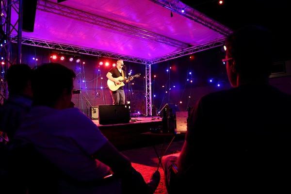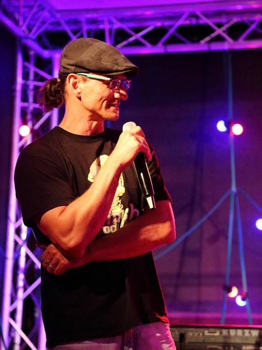Nach Mains letztem Titel kehrte auf der Bühne jedoch keine Ruhe ein. Moderator Arnold bat nochmal alle Künstler auf die Bühne zu einem gemeinsamen Finale. Völlig ungeprobt spielten die versierten Musiker den Titel "Stand by me", zu dem das Publikum laut einstimmte. Zu den Klängen von Bass, Gitarre und Cajon bedankte sich Organisator Göbel bei allen Musikern, die seiner Einladung gefolgt waren, aber auch bei den zahlreichen Menschen, die nicht auf der Bühne standen. Besonders hob er dabei die Bäckerei Hinnerbäcker und die Sparkasse Oberhessen hervor, die die Veranstaltung finanziell unterstützt haben. Als festen Partner bei der Veranstaltung kann man sich auf den Eltern-Kind-Verein verlassen. Das Vorstandsteam des Vereins unterstützt nicht nur beim Verkauf von Getränken, sondern auch bei Aufbau und Dekoration. Dank richtete er auch an Michael Bauer, dem es in jedem Jahr wieder gelingt, einen perfekten Sound auf und vor der Bühne zu mischen, Robin Buß und Nina Gerlach, die den Abend auf Bildern und Videos dokumentiert haben. Videos werden in den nächsten Wochen im Youtubekanal zu Freies im Gesang veröffentlicht. Dort stehen auch Mitschnitte aus dem vergangenen Jahr zur Verfügung.