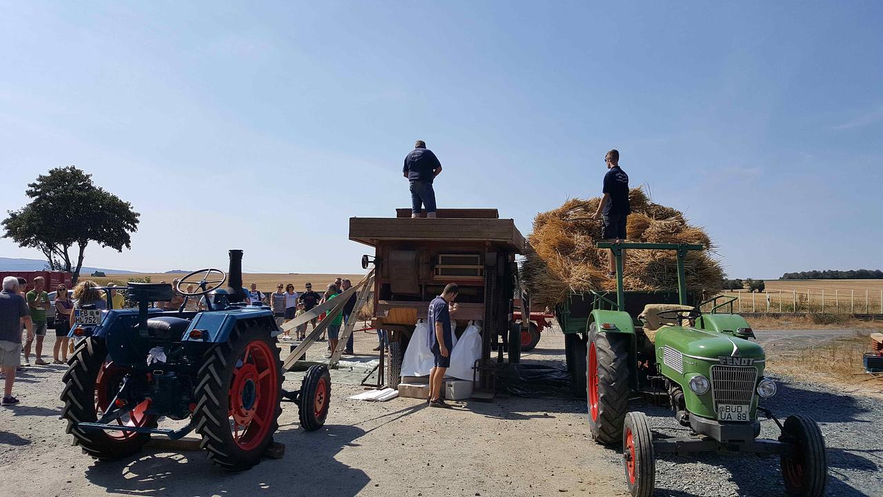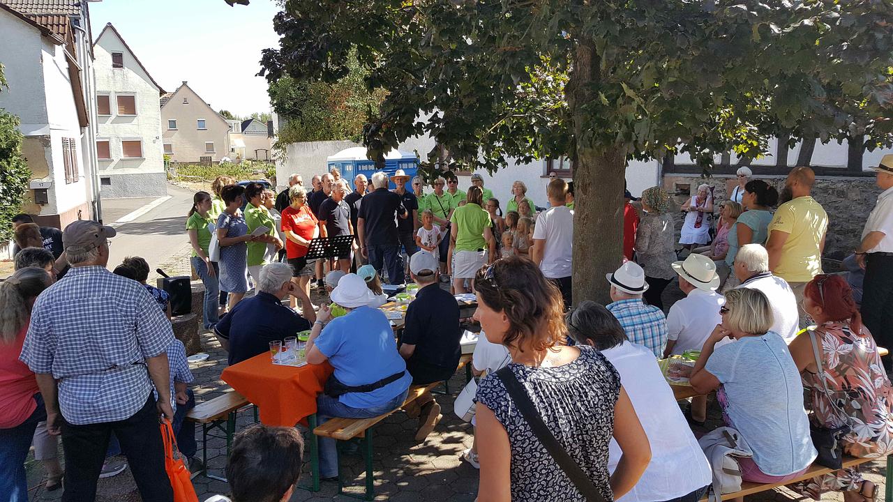 Alte Handwerksberufe, wie Schmied, Steinmetz und Weidenflechter wurden ebenso präsentiert, wie ein Blick in die Wurstküche der Metzgermeisterin oder historisches Garbenbinden und Dreschen aus der Landwirtschaft vergangener Zeiten. Mit Erstaunen und Begeisterung entdeckten die Besucher, was sich hinter den einzelnen Hoftoren verbarg, hinter denen man nicht nur viel Neues entdeckte, sondern auch seine Mitbewohner vieler Nationalitäten besser kennenlernte. Der aktuelle Abiturjahrgang der Singbergschule beteiligte sich ebenso am reichhaltigen Kultur-und Musikprogramm wie alle Ortsvereine. Erstmals präsentiert wurde das Mammutwerk von Herbert Meyer „Ein Mann schreibt Geschichten!“ über den Melbacher Chronisten Karl Reutzel, das mit einem Format von mehr als 800 Seiten ab sofort in Melbach erhältlich ist. Das sonnige Hochsommerwetter tat ein Übriges, so dass eine begeisterte Besucherin am Sonntagabend feststellte: “Das ganze Dorf war wie verzaubert!“