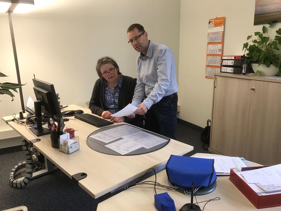 Auch das Rathaus ist an Wahlsonntagen besetzt. Die Kollegin Janina Voit steht den Wählern im Bürgerbüro zu Verfügung und unser Wahlleiter Markus Herrmann ist natürlich auch im Einsatz. Damit gibt es auch bei heftiger Erkältung keine Ausrede. Bis um 15:00 Uhr kann man im Bürgerbüro Briefwahlunterlagen beantragen. In regelmäßigen Abständen leeren wir unseren Briefkasten. Die Wahlbriefe kommen dann in die große Wahlurne.