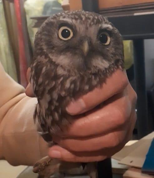 Noch eine ungewöhnliche Steinkauz Aktion: Anfang Juli rief mich um 21:00 Uhr eine Familie aus Melbach an, dass sich eine Eule in ihren Heizungsraum verirrt hat. Bei meinem Eintreffen fand ich die „Eule“ in einem Regal hinter Kartons sitzend. Was schaute mich dort an: ein verängstigter Steinkauz. Nach dem Einfangen konnten ihn die Bewohner bewundern. Das Alter war unbekannt, da nicht beringt. Er hat auf mich einen fitten Eindruck gemacht, deshalb konnte ich ihn gleich wieder draußen fliegen lassen. Vielen Dank für die mittlerweile erhaltene Spende für diese Aktion!