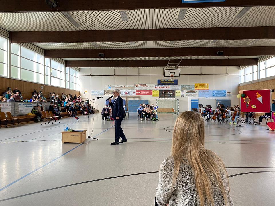 Am Dienstag wurden die fünften Klassen an der Singbergschule begrüßt. Um den Vorgaben des aktuellen Hygieneplans gerecht zu werden, fand in diesem Jahr die Einschulungsfeier ohne Eltern und mit Mund-Nasen-Schutz sowie Sicherheitsabstand auf der Tribüne der Sporthalle am Singberg statt. In zwei Durchgängen wurden 81 Schülerinnen und Schüler des Gymnasialzweiges und 120 Schülerinnen und Schüler der Förderstufe herzlich an der Singbergschule willkommen geheißen. Die Schüler teilen sich auf 8 Klassen auf. Zuvor fanden die Einschulungen an der Jim-Knopf-Schule statt. Auch hier fanden die Einschulungen in mehreren Gruppen statt. Insgesamt wurden rund 100 Schülerinnen und Schüler eingeschult. Wie üblich war auch Bürgermeister Eike See an den Schulen anwesend. Die neuen Schülerinnen und Schüler der Jim-Knopf-Schule erhielten einen Stundenplan und eine Schulbrezel von der Gemeinde.