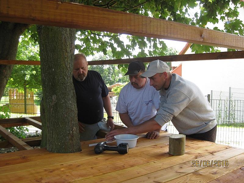 Ähnlich sieht es im Södeler Kindergarten aus. Ein neues Außengelände wurde gewünscht, und auch hier packten die Eltern kräftig mit an. Nachdem der Bauhof mit zahlreichen Einsatzstunden vorangegangen war, wurden von den Eltern die Böden für zwei Baumhäuser verlegt und alles wurde gestrichen.