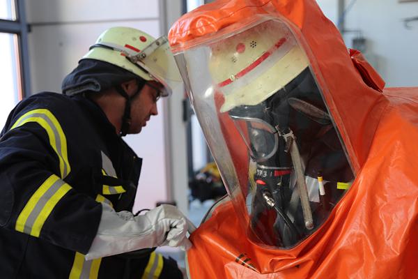 Im Rahmen des Lehrgangs mussten, neben einem theoretischen Teil, in Schutzanzügen verschiedene Aufgaben bewältigt werden. Einfache Feuerwehrknoten, die bereits in der Jugendfeuerwehr beherrscht werden, wurden somit zur Herausforderung.