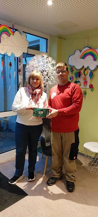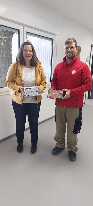 Zu guter Letzt übergab Mitarbeiter Sandro Langer 72 Taschentücherboxen an die größte der Einrichtungen, die Kita Löwenzahn, die von Leiterin Iris Bender ebenfalls dankend entgegengenommen wurden.
