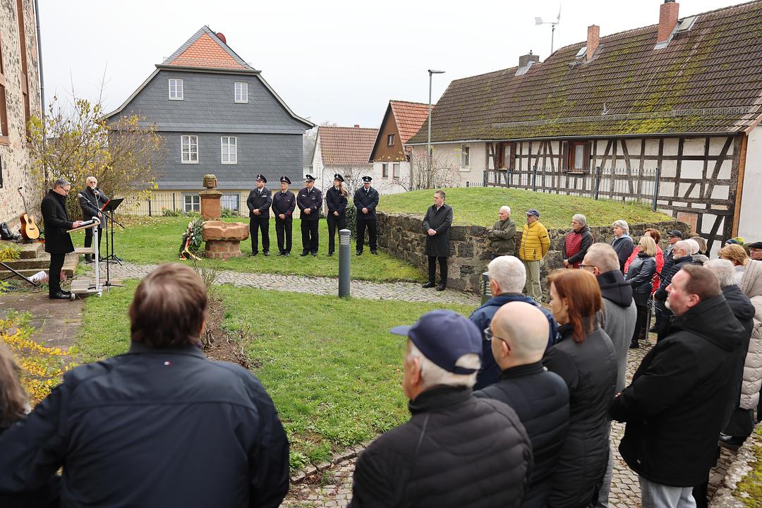 Im Anschluss an die Ansprachen folgte die Kranzniederlegung am Ehrenmal. Einsatzkräfte der Feuerwehr legten den Kranz der Gemeinde und der VdK einen eigenen Kranz zum stillen Gedenken nieder.
