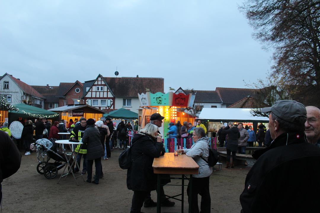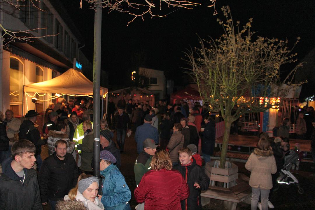 So richtig behaglich wurde es mit Einbruch der Dunkelheit, der Tanzhof zeigte sich von seiner schönsten Seite und lockte immer mehr Besucher an. Pünktlich um 18 Uhr lief der letzte Tropfen Wasser durch den Brunnen am Zingelplatz, symbolisch wurde hierfür eine Miniatur-Version des Brunnens vom Arbeitskreis Dorfentwicklung abgestellt. Bei einem heißen Äppler, Glühwein oder Kinderpunsch genossen die Gäste die herrliche Atmosphäre inmitten der Markthütten.