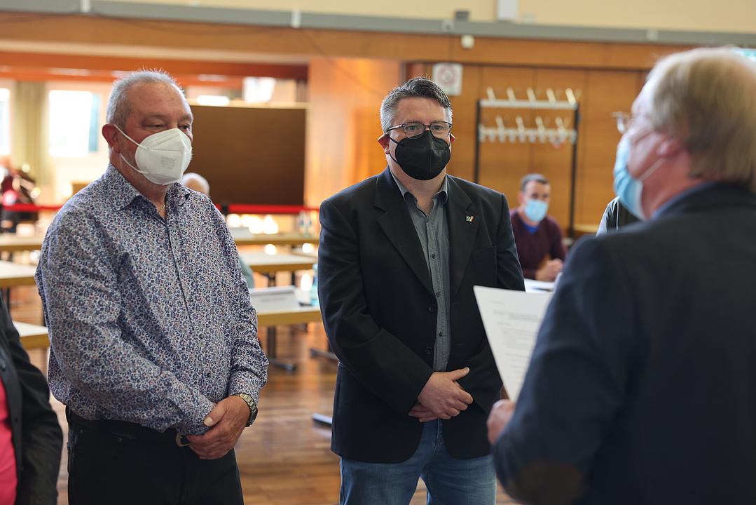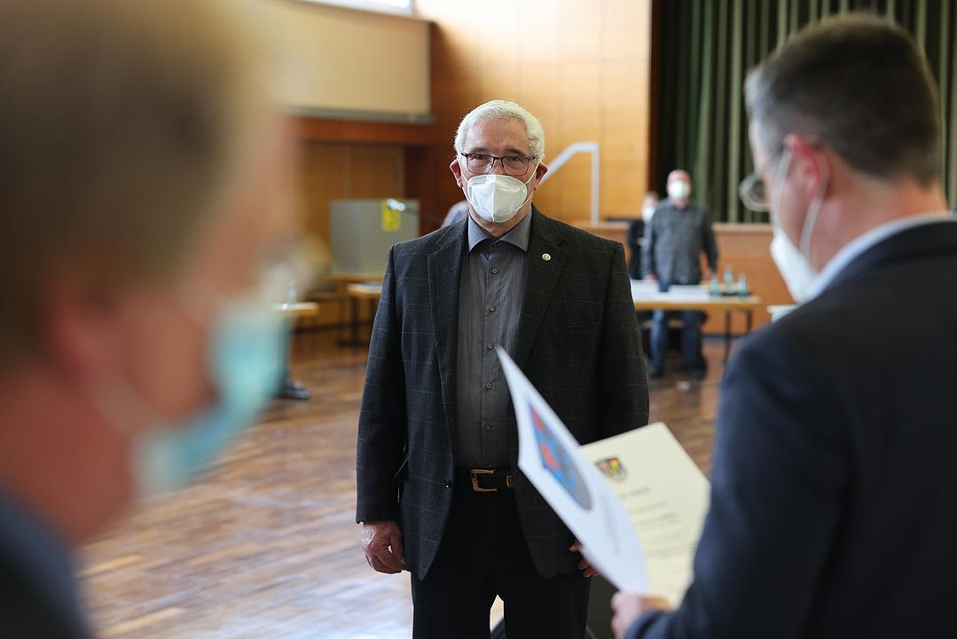 Wie bereits bei der vergangenen Sitzung hatten alle Parlamentarier und Besucher die Möglichkeit, einen kostenfreien Corona-Schnelltest durchführen zu lassen, der von zwei Mitarbeiterinnen der Sozialstation durchgeführt wurde. Fast alle nutzten das Angebot, so dass die Sitzung mit leichter Verzögerung begann. Gerhard Weber begrüßte als Vorsitzender die Anwesenden und leitete direkt in den ersten Tagesordnungspunkt, die Wahl des Gemeindevorstandes, über. Nachdem in der vergangenen Sitzung beschlossen wurde, die Zahl der Mitglieder des Gemeindevorstandes zu erhöhen, damit alle Fraktionen vertreten sind, wurde die Satzung entsprechend geändert, und die Wahl der Vorstandsmitglieder konnte in dieser Sitzung erfolgen. Die Fraktionen hatten hierzu alle Wahlvorschläge mit mehreren Personen benannt. Auf den Wahlvorschlag der SPD entfielen 16 Stimmen, wodurch 5 Sitze im Gemeindevorstand zur Verfügung stehen. Der Wahlvorschlag der Grünen erhielt 5 Stimmen, der von CDU und FWG jeweils 4. Damit steht den Fraktionen je ein Sitz zur Verfügung. Die Vergabe der Sitze erfolgt nach der Reihenfolge des Wahlvorschlages. Gewählt wurden Carmen Körschner, Gerhard Fuchs, Dr. Jürgen Polster, Michael Schmidt, Karl-Ernst Pulkert (alle SPD), Rainer Iseler (Grüne), Manfred Stoll (CDU) und Willi Lind (FWG). Gemeindevertretervorsitzender Gerhard Weber vereidigte die Beigeordneten, und Bürgermeister Eike See verlas und überreichte ihnen die Ernennungsurkunde. „Ich freue mich auf eine weiterhin vertrauensvolle und partnerschaftliche Zusammenarbeit. Zugleich möchte ich es nicht versäumen, mich beim bisherigen Gemeindevorstand für die gute und sachorientierte Zusammenarbeit über Parteigrenzen hinweg zu bedanken. Besonderen Dank möchte ich an dieser Stelle Hans Reiner Heßler aussprechen, der nach vielen Jahren politischem Engagement nicht mehr Teil des Gemeindevorstandes ist,“ so Bürgermeister See.