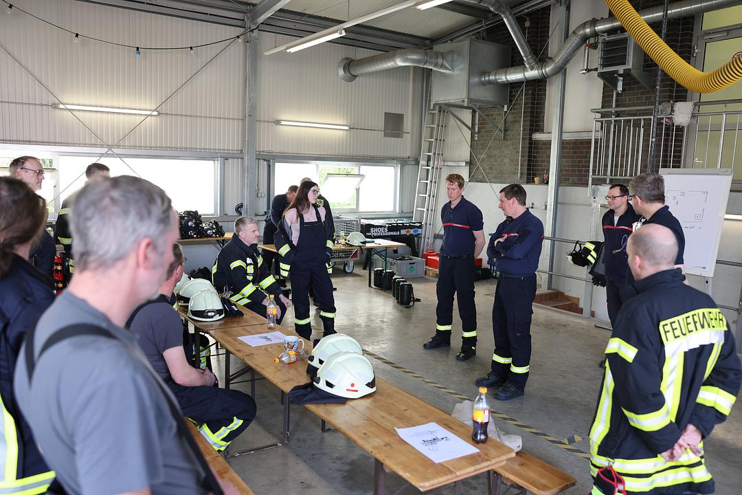 Nachdem am 18. April bereits eine gemeinsame theoretische Unterweisung durchgeführt wurde, folgte am Samstag der praktische Teil. Es wurden in drei Stationen verschiedene Themen trainiert. Es gab die Stationen: „Menschenrettung im Atemschutzeisatz“, „Einsatz der Wärmebildkamera“ und „jährliche Einsatzübung unter Atemschutz“.