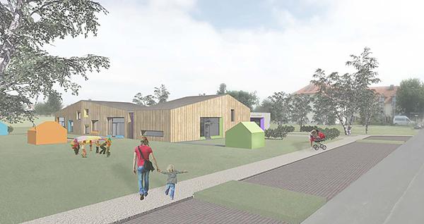 Vorgesehen ist ein Kindergarten für insgesamt drei Gruppen. In der Regelgruppe sollen 25 Kinder im Alter von drei bis sechs Jahren betreut werden können. Werden Kinder mit Behinderung betreut, kann die Anzahl der Betreuungsplätze entsprechend reduziert werden. In der altersgemischten Gruppe können ebenfalls 25 Kinder betreut werden. Hier ist allerdings schon eine Betreuung ab dem zweiten Lebensjahr geplant. Die geplante Nestgruppe bietet Platz für 12 Kinder im Alter von zwei bis drei Jahren. Damit trägt die Gemeinde der großen Nachfrage in diesem Bereich Rechnung und erhöht das Platzangebot für Kleinkinder deutlich. Insgesamt finden bis zu 62 Kinder einen Betreuungsplatz. Direkt aus den drei Gruppenräumen gelangt man in die beiden Schlafräume, in denen Kinder mit Ganztagsbetreuung schlafen können. Der geplante Mehrzweckraum wird durch eine mobile Trennwand vom Speiseraum getrennt, an den die Ausgabeküche angrenzen wird. Für Feste und gemeinsame Aktivitäten bietet sich hier ein optimaler Platz. Neben Personal-, Sanitär- und Reinigungsräumen findet man auch einen Differenzierungsraum, der eine intensivere Arbeit mit den Kindern ermöglichen soll. Durch einen kleinen Innenhof sollen die Flurbereiche hell und offen wirken. Wie Bürgermeister Rouven Kötter berichtet, konnte man bei der Planung ein optimales Ergebnis erzielen. „Beim Bau der Kindergärten in Berstadt und Wohnbach konnten wir wertvolle Erfahrungen gewinnen, die bei diesem Projekt mit einfließen konnten. Anders als bei den letzten beiden Neubauten war man hier nicht an bestehende Gebäude gebunden, sondern konnte frei planen. Das sieht man dem tollen Ergebnis an.“ so Kötter.