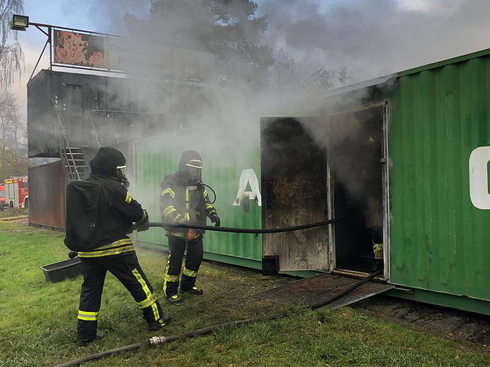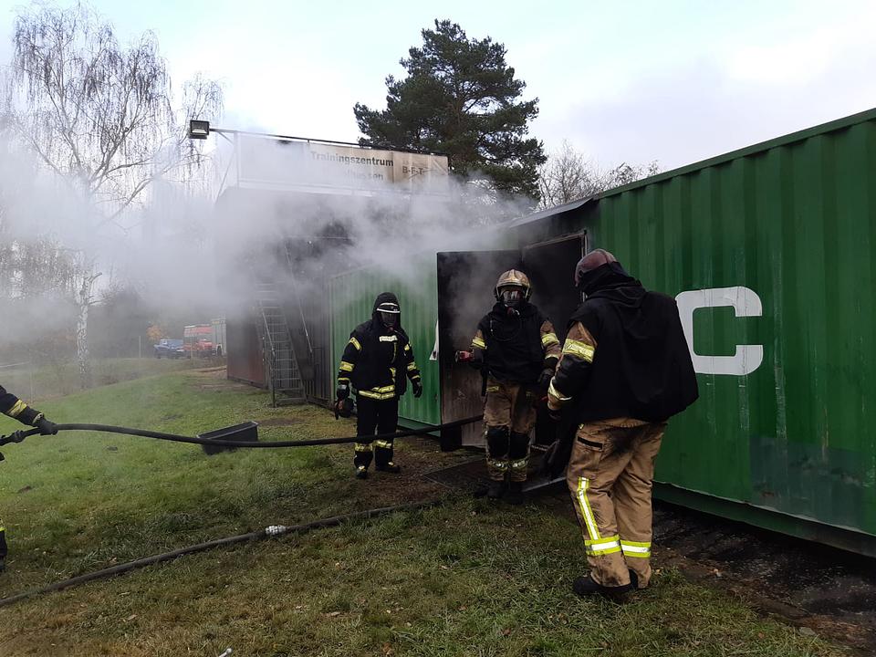 Bei dieser Ausbildungsmaßnahme wurden speziell die Atemschutzgeräteträger*innen zum Thema „Verhaltenstraining Innenbrandbekämpfung“ mit der Wärmebildkamera geschult. Neben einem theoretischen Schulungsteil am Morgen stand im weiteren Verlauf vor allem der Umgang mit der Wärmebildkamera auf dem Programm. Hierbei konnten alle Einsatzkräfte hilfreiche Erkenntnisse sammeln, die später in der Realbrandanlage ein- und umgesetzt werden mussten. In der Brandsimulationsanlage mussten die vorgehenden Atemschutztrupps verschiedene Aufträge, wie beispielsweise die Rettung einer vermissten Person und die spätere Brandbekämpfung, erfüllen. Trotz Nullsicht, starker Verrauchung und Hitze konnten die Trupps ihre Aufträge mit Hilfe der Wärmebildkamera sicherer abarbeiten.
