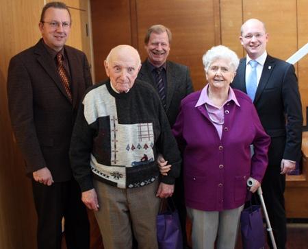 Auch der ehemalige Wölfersheimer Rathauschef und heutige Landrat, Joachim Arnold, war unter den Ehrengästen und nahm an der Ehrung der ältesten anwesenden Mitbürgerinnen und Mitbürger geehrt. Dies waren Anna Becker mit 96 Jahren und Wilhelm Falk mit 94 Jahren.