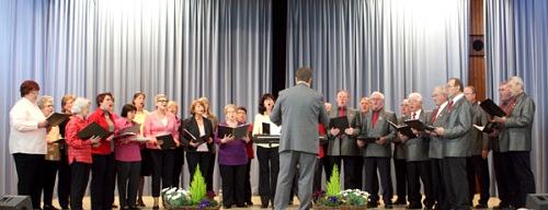 Nach einer kurzen Umbaupause waren die einzelnen Gruppen des Berstädter Gesangvereins zu hören. Den Anfang machte der gemischte Chor mit Lieder wie "Wenn alle Brünnlein fließen" oder "In dem Schneegebirge", und erntete hierfür viel Applaus. Gleiches galt auch für den Frauenchor, der unter anderem den Titel "Hebe deine Augen auf" von Mendelsson Bartholdy zum Besten gab. Als letzte Gruppe des Gesangvereins spielte die Gitarrengruppe drei Lieder, darunter "Tiritomba".