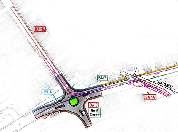 Straßenbaumaßnahmen am Kreisel selbst. In den letzten Bauabschnitten