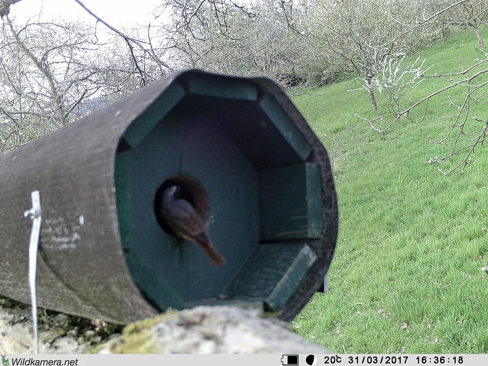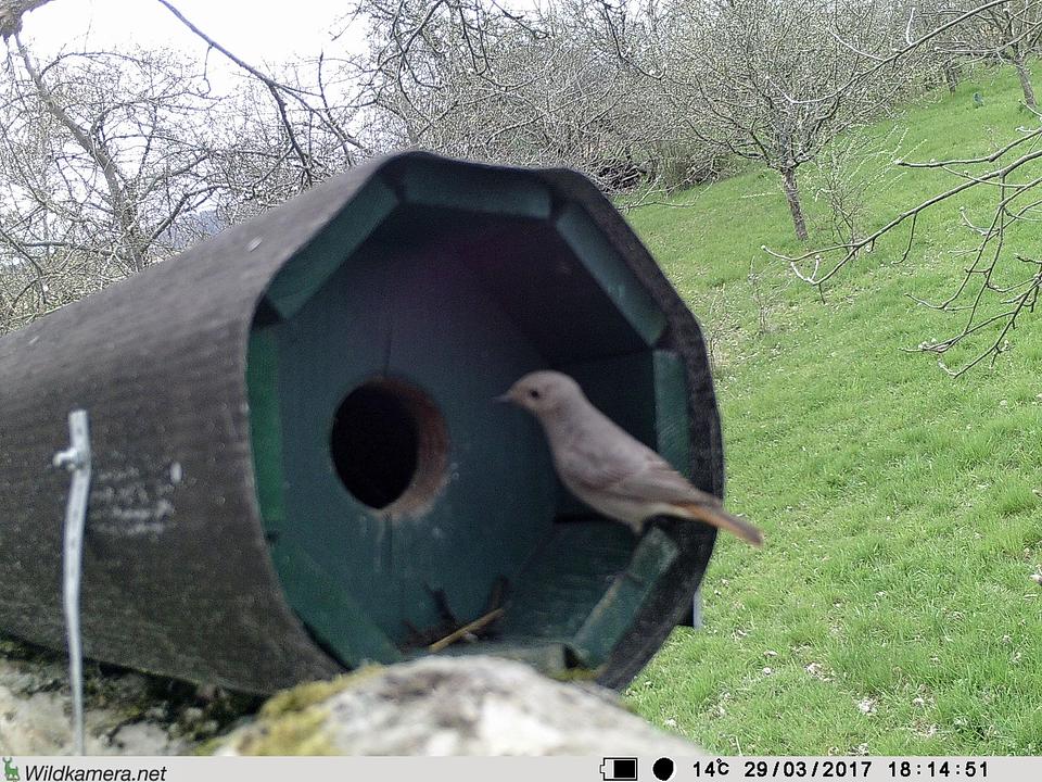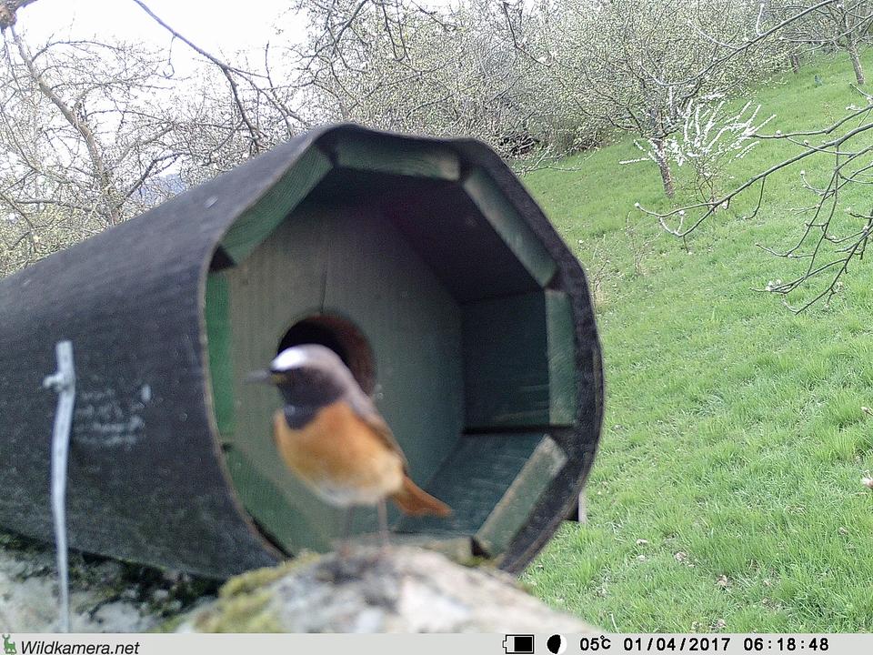 Die Nachfrage nach "gemütlichen" Brutplätzen scheint in der Vogelwelt doch recht hoch zu sein. Hausrotschwanz, Gartenrotschwanz und Meise interessieren sich auch für diese Bruthöhle.