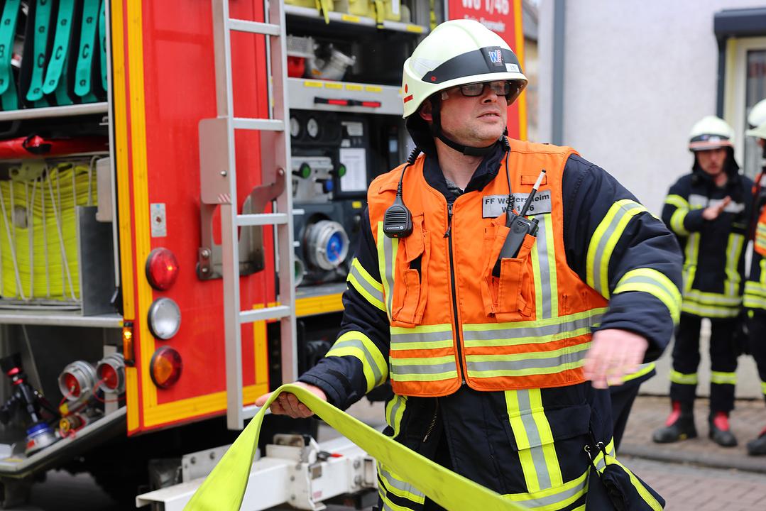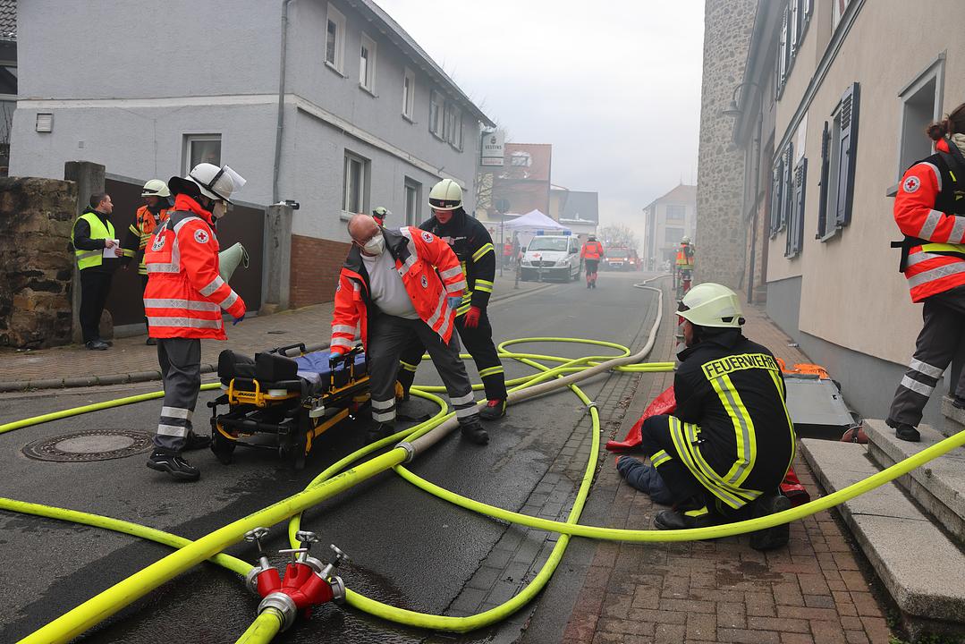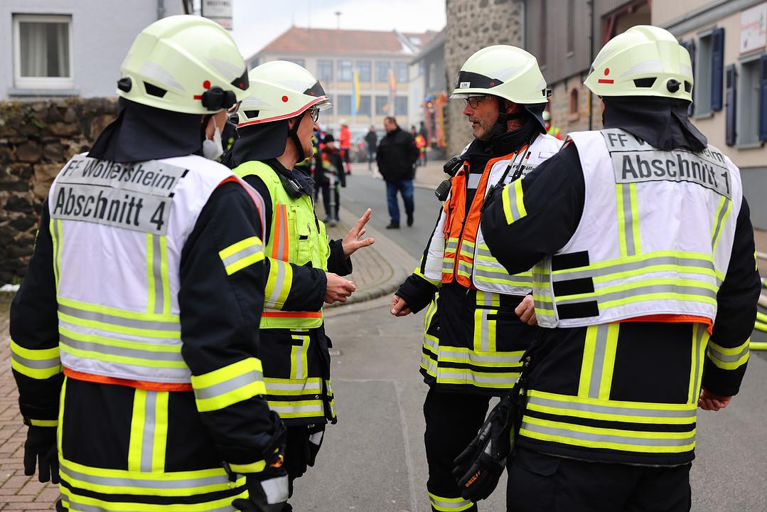 Die Einsatzkräfte wussten nichts von der Übung. Die Alarmierung erfolgte wie im Ernstfall für die Einsatzabteilung aus Wölfersheim, Melbach und Södel. Als einer der ersten am Einsatzort war der stellvertretende Gemeindebrandinspektor Thomas Küchenmeister. Bei seiner Ankunft kam schon die erste verletzte Person schreiend aus dem Haus gerannt. Er führte zunächst eine Lageerkundung durch um sich ein Bild von der Einsatzstelle zu verschaffen. Schnell war klar, dass nachalarmiert werden muss, und so wurden auch die Wehren aus Wohnbach und Berstadt alarmiert. „Im Ernstfall hätte man aufgrund der Atemschutzgeräteträger vermutlich auch weitere Wehren aus dem Umkreis alarmiert. Um die Einsatzstelle gut bearbeiten zu können wurden Abschnitte gebildet. Die vier Abschnittsleiter haben ihre Abschnitte hervorragend abgearbeitet,“ so Küchenmeister. Eine Wasserversorgung wurde hergestellt, die Einsatzstelle gesichert, der Brand gelöscht, die Verletzten aus dem Gebäude gerettet und an einem Bereitstellungsplatz an den Rettungsdienst übergeben. „Es war eine sehr herausfordernde und realitätsnahe übung, aber natürlich auch sehr interessant. Auch wenn es nur eine Übung war, waren die ersten minuten kein Spaß,“ unterstreicht Küchenmeister.