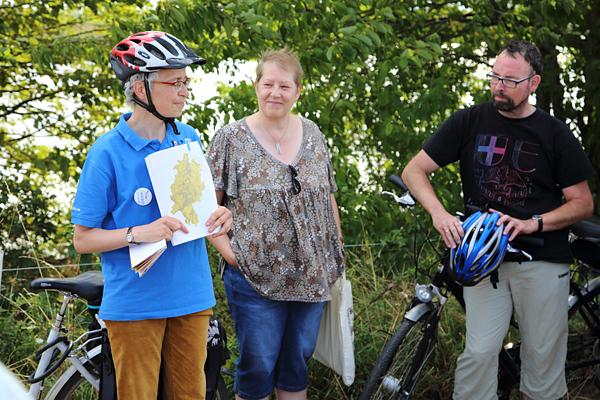 Im Mittelpunkt am Sonntag stand die Natur. Dr. Doris Jensch vom Naturschutzbund (NABU) führe die Gruppe von etwa 30 Personen durch die Gemeinde. An den einzelnen Stationen informierte sie über die Pflanzenwelt in Dörfern, die historische Entwicklung unserer Landschaft und die heimische Vogelwelt. Ergänzt wurden die Informationen von der Natur- und Vogelschutzgruppe, die an verschiedenen Stellen über ihre Arbeit informierte. Die Tour endete am Solarpark, wo das Solarcafé der Nabu schon mit Kaffee und Kuchen wartete.