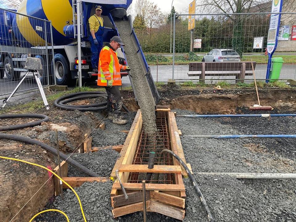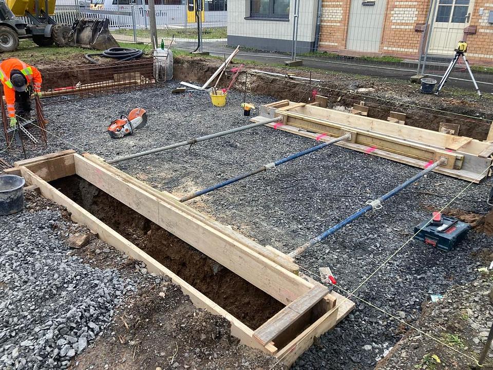 Vor einigen Tagen konnte dann mit den eigentlichen Arbeiten an der Abstellanlage begonnen werden. Hierfür wurden zunächst die massiven Fundamente für die Dachkonstruktion hergestellt. Anschließend konnten die Randsteine für den gepflasterten Bereich gesetzt werden. Bereits jetzt wird deutlich, dass die Abstellanlage wesentlich größer ist als die Anlagen am Rathaus oder Wölfersheimer See. Neben 16 normalen Radabstellplätzen werden auch 6 Radboxen entstehen. Dabei handelt es sich um eine Art „Mini-Garage“ in der Räder komplett eingeschlossen werden können. Insbesondere für teurere E-Bikes bietet sich damit eine gute Abstellmöglichkeit. Die Nutzung ist vergleichbar mit einer Schwimmbadumkleide einfach über ein Münz-Pfand-System möglich. Die Radboxen verfügen auch über entsprechende Möglichkeiten ein E-Bike zu laden.