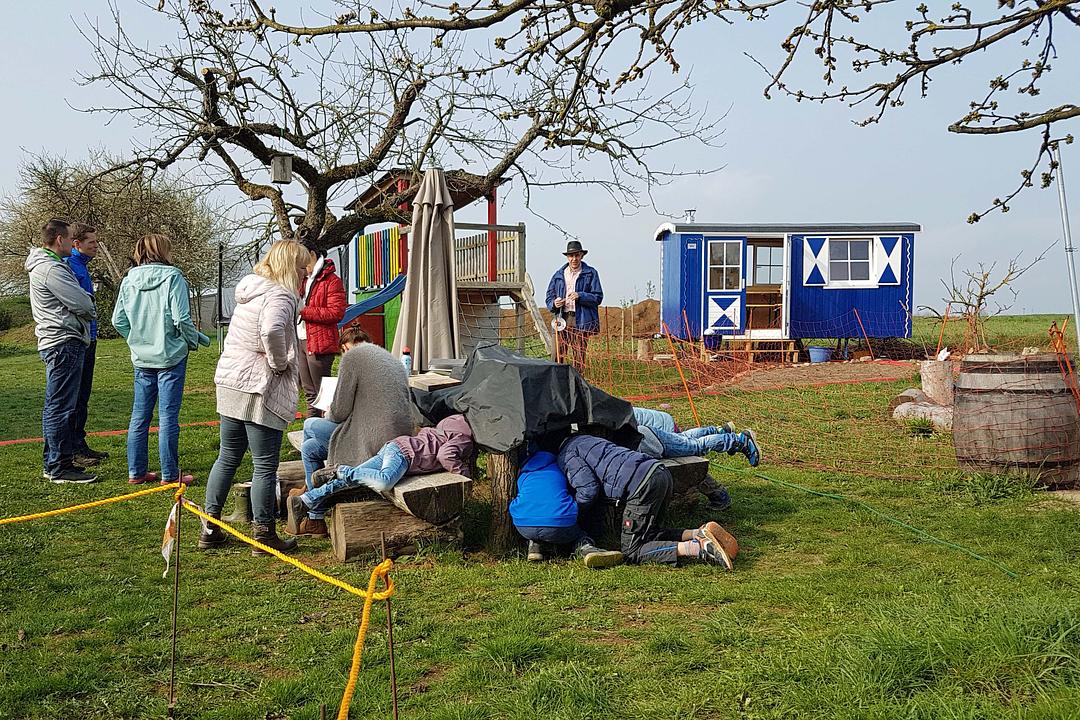 Auf dem naturnahen Grundstück von Wolfgang Kring - dort steht auch ein großer beheizbarer Bauwagen - fand dann am 6. April das erste Treffen statt. Obwohl für diese Aktion keine Werbung gemacht wurde, waren bei dieser ersten Veranstaltung schon 12 sehr interessierte Kinder anwesend. Auch das Thema, Tiere im Wasser, wurde super angenommen da es lebendiges Anschauungsmaterial wie Erdkröten, Molche, Wasserschnecken und Libellenlarven aus dem Gartenteich zu bestaunen gab. Eine gelungene Veranstaltung, und alle Kinder hielten ca. 1,5 Std auch gut durch.