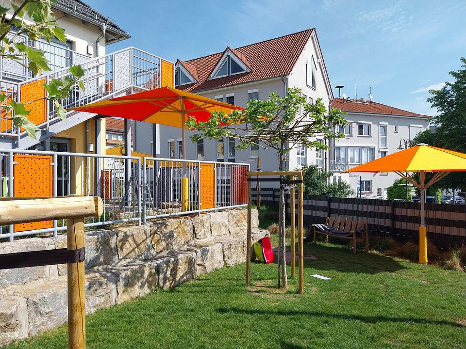 Bereits bei der Gestaltung des Außengeländes der Kita wurden Sonnensegel und Bäume vorgesehen. Die Bäume sind jedoch noch recht klein und spenden nur bedingt Schatten. Daher wurden nun noch zwei fest installierte Großschirme ergänzt. „Die Sicherheit und das Wohlbefinden der Kinder haben oberste Priorität“, betont Fachbereichsleiterin Nicole Stelzner-Lehmann. „Durch die Investition in die neuen Schirme möchten wir sicherstellen, dass die Kinder auch bei sonnigem Wetter unbeschwert spielen können und vor starker Sonneneinstrahlung geschützt sind.“ Auch in anderen Kitas wurde das Thema Sonnenschutz betrachtet. Nach der Installation auf dem Gelände der Kita Löwenherz sollen nun noch weitere Schirme folgen.