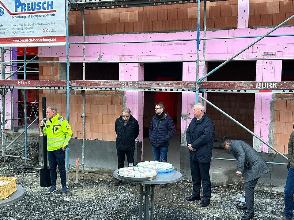 Bürgermeister See betonte in seiner Rede die Bedeutung der Feuerwehr und dankte allen Gremienmitgliedern für das entgegengebrachte Vertrauen in die Arbeit der Verwaltung sowie in die Feuerwehr. Er hob hervor, dass die Unterstützung der Feuerwehr in Wölfersheim ein echtes Anliegen und kein bloßes Lippenbekenntnis sei. Er unterstrich die Wichtigkeit einer gut ausgestatteten Feuerwehr, die in Notsituationen, sei es in Melbach, Södel oder auf der Autobahn, schnell und effizient Hilfe leisten kann. Anschließend dankte See ausdrücklich den anwesenden Feuerwehrleuten aus allen Abteilungen und betonte, dass das neue Gerätehaus für zukünftige Generationen von Feuerwehrangehörigen errichtet wird. Die Anwesenheit vieler Generationen unterstreiche die Bedeutung dieses Ereignisses.