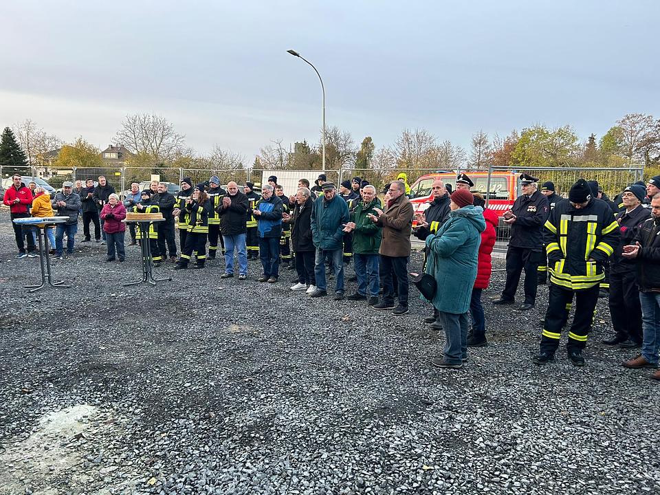 Bürgermeister Eike See begrüße die Gäste und blickte dabei auf die bisherigen Entwicklungen zurück. Am 1. Mai 2019 wurde er von den Wehrführern der beiden Ortsteile erstmals auf das Projekt angesprochen. Bis die Bauantragsunterlagen im Frühjahr 2022 eingereicht werden konnten, war viel Arbeit notwendig. „Das wir heute hier stehen können ist das Ergebnis umfangreicher Planungen und Abstimmungen, einschließlich der Besichtigung mehrerer moderner Feuerwehrgerätehäuser und der intensiven Zusammenarbeit mit verschiedenen Fachleuten und Behörden,“ unterstrich See und dankte neben den Projektverantwortlichen Hochbauleiter Anton Krippner, Klimaschutzmanager Markus Michel und Fachbereichsleiter Thorsten Höhne besonders den Ehrenamtlichen für ihren Einsatz und die gute Zusammenarbeit. In zahlreichen Sitzungen arbeiteten die Verantwortlichen an den Details des Bauantrags. Ein besonderes Augenmerk lag auf der Erstellung einer detaillierten Konzeptstudie und der Einplanung der erforderlichen Mittel. Die finalen Förderanträge wurden im September gestellt.