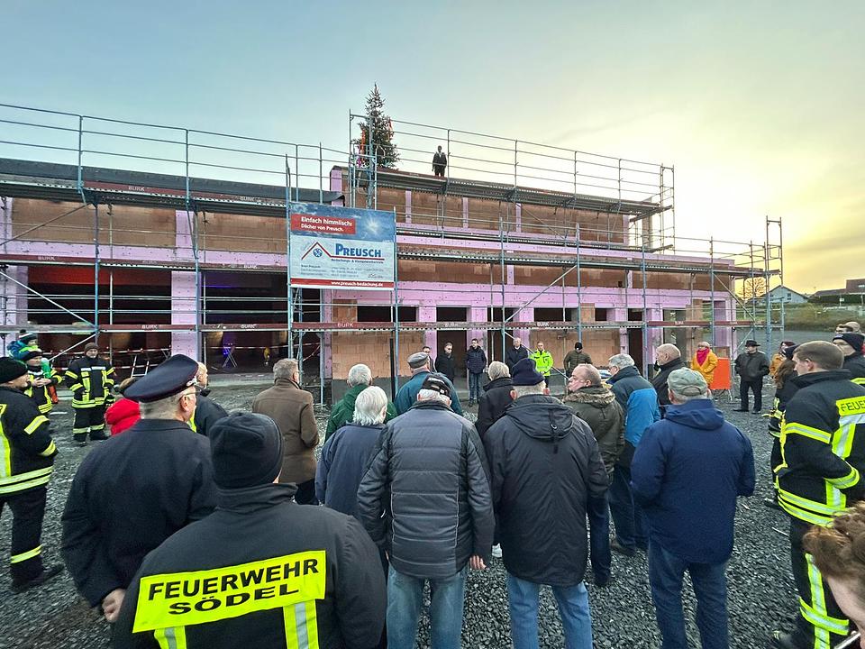 Im Anschluss bestand die Möglichkeit sich im Inneren des Gebäudes vom Fortschritt der Arbeiten und den entstehenden Räumlichkeiten zu überzeugen. Bei Essen, kühlen und heißen Getränken ließ man den Abend gesellig ausklingen. Ein besonderer Dank gilt an dieser Stelle Karina Stöckl und dem Team des Betriebshofes für Organisation und Aufbau. „Diese Veranstaltung markiert einen wichtigen Meilenstein in der Zusammenarbeit der Feuerwehren von Melbach und Södel und symbolisiert das Engagement und die Wertschätzung der Gemeinde für die Einsatzkräfte der Feuerwehr,“ so Bürgermeister Eike See abschließend.