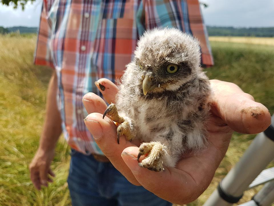 Im Mai und Juni fand dann die Brutkontrolle Steinkauz statt. Das Ergebnis war „durchwachsen“, 28 Jungvögel konnten beringt werden. In mindestens 4 Röhren waren Prädatoren, wie Marder und Mauswiesel, aktiv. Deshalb werden wir nach und nach alle Röhren mit Marderschutz ausrüsten.