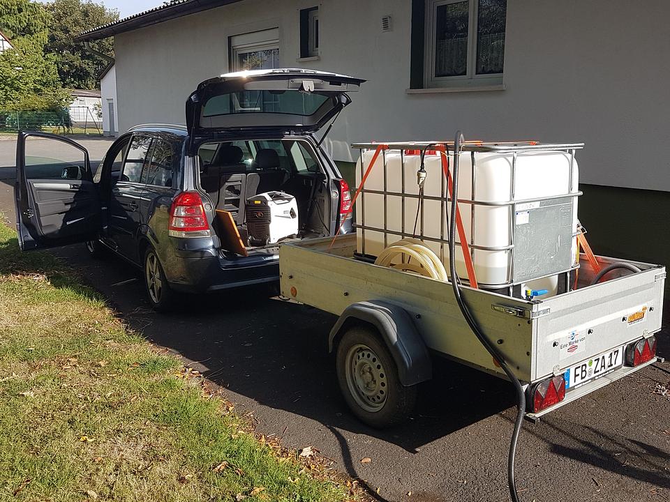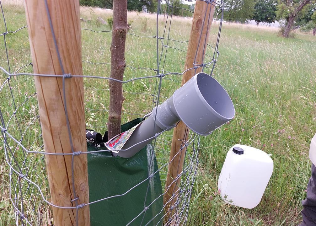 Die Trockenheit war für uns „die Aufgabe“ des Sommers. Die letzten Jahre hatten wir die jungen Bäume auf den Streuobstwiesen mit Kanistern bewässert. Der letzte Sommer war aber so trocken, dass es in dieser Form nicht mehr machbar war. Daraufhin hat uns die Gemeinde Wassersäcke zur Bewässerung zur Verfügung gestellt. Aber diese mit Kanistern zu befüllen war für uns sehr arbeitsintensiv. Nach Rücksprache mit der Gemeindeverwaltung wurde uns ein 600l Fass zur Verfügung gestellt, und wir haben Zutritt zu einer Füllstelle bekommen. Das war die Lösung! Ab Juli haben wir dann an 9 Tagen insgesamt ca. 16.000l, im Schnitt 1 x die Woche, in die Säcke gefüllt. Damit sind die Bäume gut durch diesen extrem trockenen Sommer gekommen.