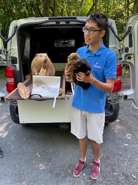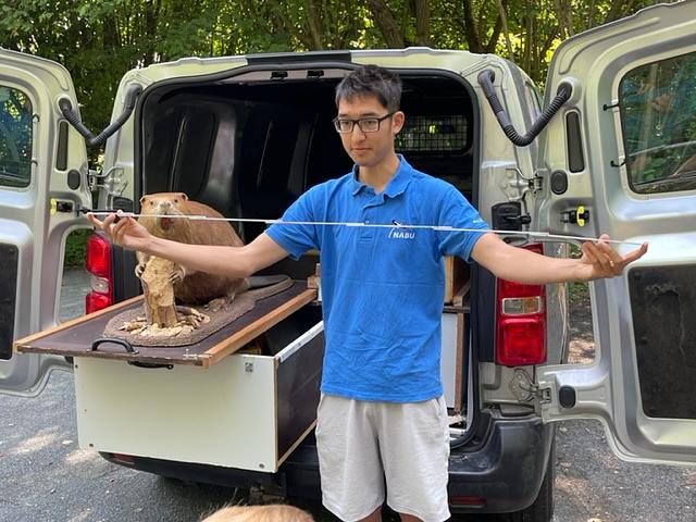 Auch unsere NAJU Gruppe war wieder aktiv. Highlight des Jahres war der Besuch des Bibermobils im Juli am Wölfersheimer See. Wir hatten vor geraumer Zeit schon festgestellt, dass der Abfluss des Sees, der Biedrichgraben, durch einen Biberdamm angestaut ist. Das wurde dann vor Ort den Teilnehmern im Detail erklärt.