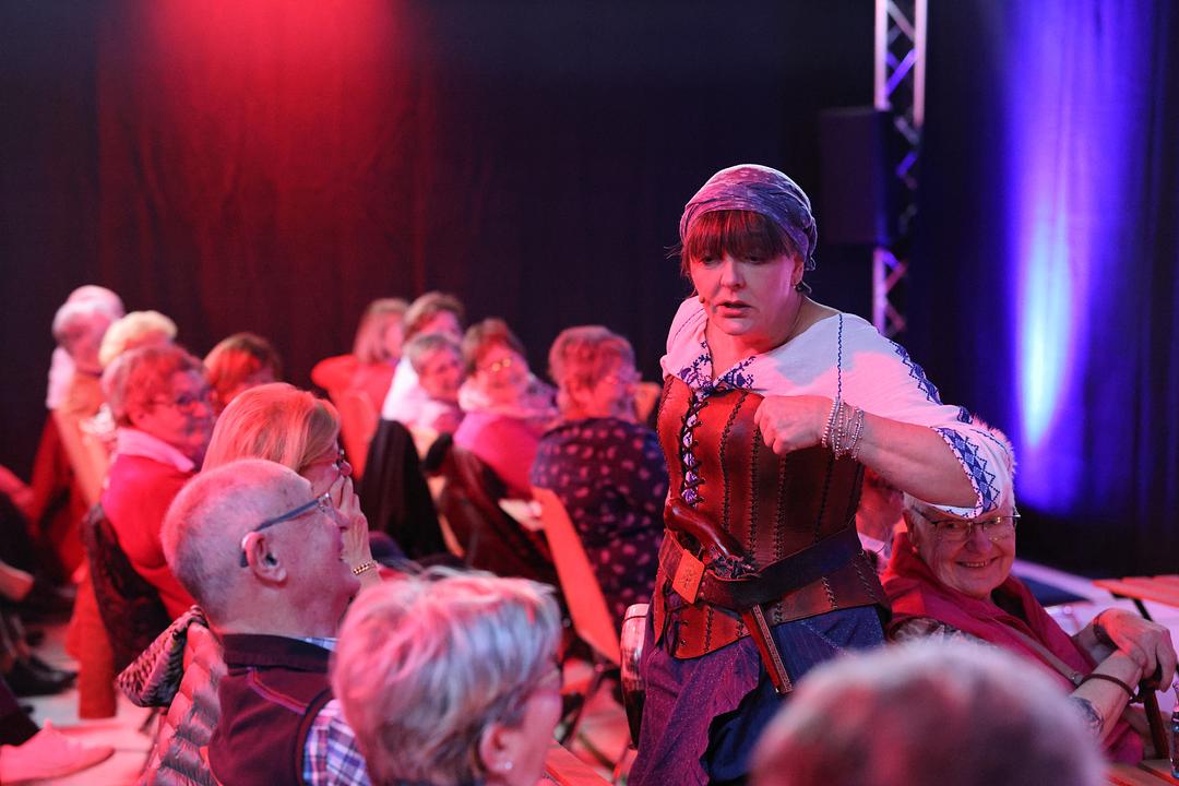 Mit ihrem Programm „Spessartgeheimnisse“ hat Rena Schwarz die Herzen der Zuschauer im Sturm erobert. In der Rolle der Räuberbraut Lilly führte sie die Gäste durch eine Welt voller Abenteuer und Anekdoten, die im Spessart des 18. und 19. Jahrhunderts angesiedelt sind. Ihre Darbietung sorgte für Begeisterung und viele Lacher unter den Anwesenden. Gleich zu Beginn verstand sie es das Publikum gekonnt einzubeziehen.