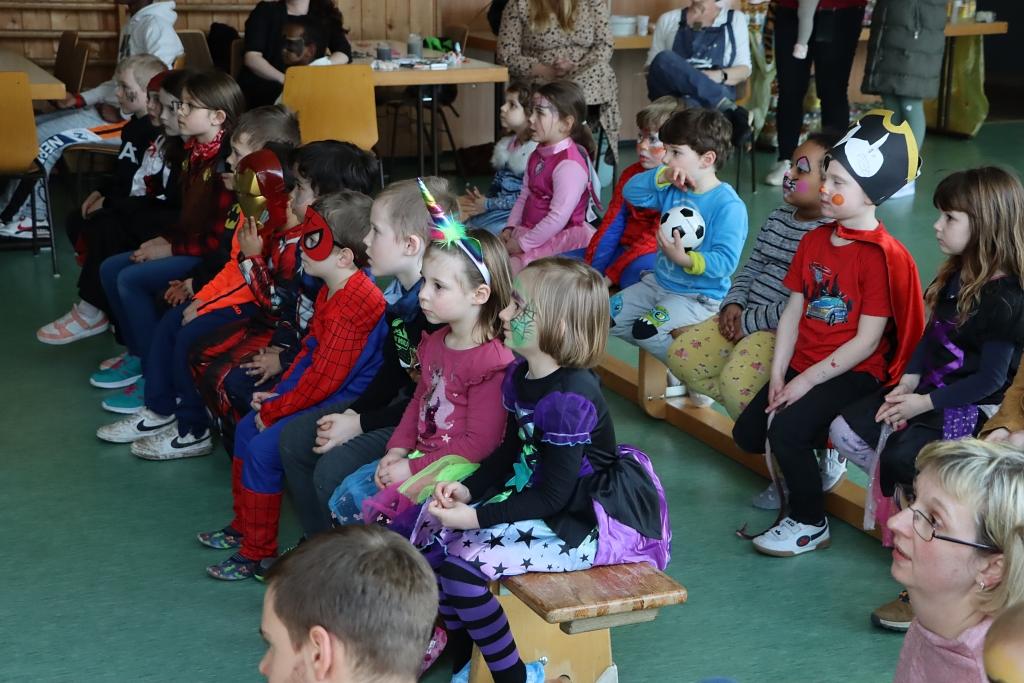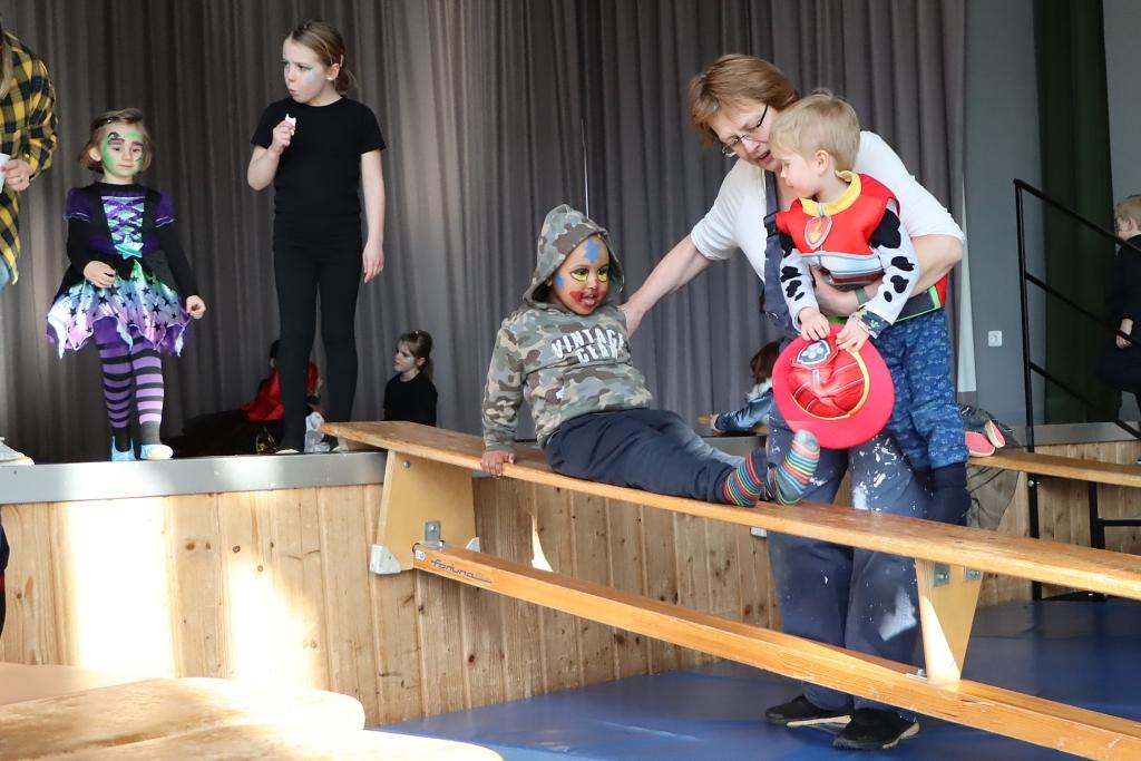Sowohl die Kleinen als auch die größeren Geschwisterkinder (und Eltern) hatten sich größtenteils kostümiert eingefunden und konnten frei rumtoben. Bällebad und Turnrutschen animierten zur Bewegung. Nebenbei lief lustige Faschingsmusik. Natürlich durften auch viele Luftschlangen, Luftballons und Kinderschminken nicht fehlen. Die „Popnuts“, die jüngere Showtanzgruppe der Turngemeinde, nutzten die Gelegenheit einen Tanz vorzuführen. Lautstarker Beifall und eine Zugabe waren selbstverständlich.