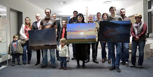 Eine Langzeitbelichtung von Daniel Rüd schaffte es auf den dritten Platz. Sie zeigt den Sternenhimmel über dem Wölfersheimer Feld. Hierfür erhielt er einen von der Metzgerei Pfarrer gestifteten Gutschein und für ein anderes Bild auf Platz 5 einen vom Wölfersheimer Fitnessstudio fitdelio gestifteten Saunagutschein für zwei Personen. Auf dem zweiten Platz landete Jonas Kinski mit einem Bild von einem Blatt auf der Römerstraße. Eine sehr kreative Aufnahme in mythischen Blautönen mit gekonnt eingesetzter Tiefenschärfe. Belohnt wurde er mit einem Gutschein im Wert von 100 Euro, der in allen Wölfersheimer Geschäften eingelöst werden kann. Den ersten Platz belegte Soon-Hee Lim-Teuchert, die insgesamt mit ihren sehr stimmungsvollen Aufnahmen überzeugte. Ihr Bild zeigt eine Reihe von Bäumen im Wölfersheimer Feld. Für den ersten Platz erhielt Teuchert einen Einkaufsgutschein im Wert von 200 Euro.