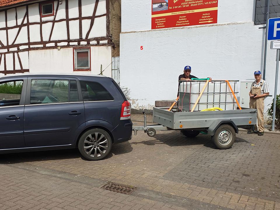 Im vergangenen Jahr haben wir zwischen dem 14. Juli und 12 Sept. an 9 Tagen unser 650 l Fass 24 mal gefüllt und damit ca. 16.000 l an die Wurzeln der Bäume gebracht.