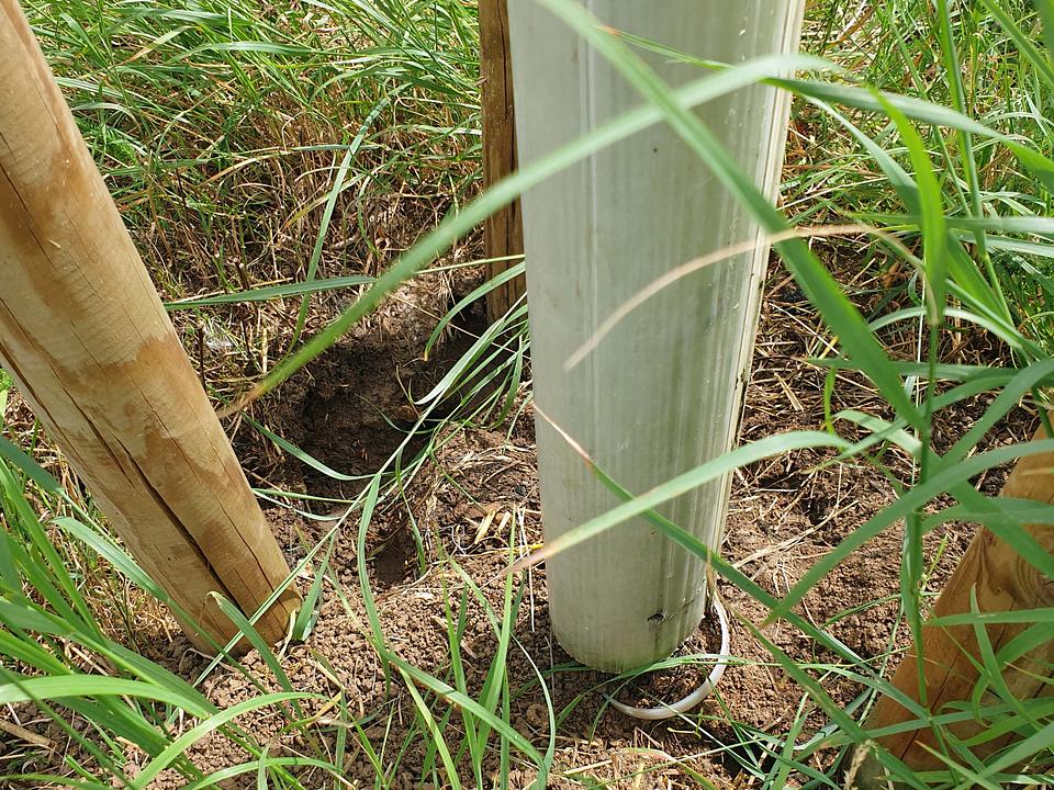 Leider wurden wir in diesem Jahr mit einem neuen Problem konfrontiert. Auch Nager haben Appetit auf Wasser und beissen dafür Löcher in die Säcke. Die sind damit hin, bisher 4 Stück. Dafür haben wir im Moment noch keine richtige Lösung! (Bild sieben und acht)