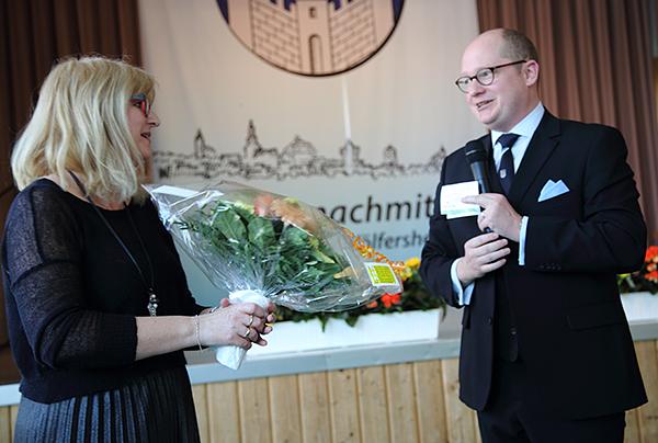 Wie üblich war die Halle schon pünktlich zum Beginn gut gefüllt. Bei Kaffee und Kuchen tauschte man sich mit Freunden und Bekannten aus, die man lange nicht gesehen hatte. Für die notwendige Unterhaltung hatte die Gemeinde ebenfalls gesorgt. Das Programm wurde von Bürgermeister Rouven Kötter offiziell eröffnet. In seiner Ansprache begrüßte er zunächst die Ehrengäste unter denen sich neben den Gemeindevorstandsmitgliedern Carmen Körschner und Dr. Jürgen Polster, dem Vorsitzenden der Gemeindevertretung Gerhard Weber und der Vorsitzenden des Sozialausschusses Magda Gerlach auch die Sozialdezernentin des Wetteraukreises Stephanie Becker Bösch befand. Ebenso zeigte er sich erfreut, dass Pfarrer Wolfgang Kaiser der Einladung der Gemeinde gefolgt war. Kötter dankte allen, die zum Gelingen der Veranstaltung beigetragen haben. Besonderen Dank richtete er an die im Rathaus zuständige Mitarbeiterin Martina Schmitt, die für die Organisation zuständig war. Er dankte aber auch den Landfrauen aus Wölfersheim und Södel, die sich wieder bereit erklärt haben, die Bewirtung zu übernehmen. Objektbetreuer Stephan Schennach überreichte er als Dank für sein Engagement einen Gutschein. An der Wand des neu gestalteten Thekenbereiches konnte man das von ihm aufgemalte Logo zum Jubiläum bestaunen, und auch in anderen Gebäuden der Gemeinde hat er sich bereits künstlerisch betätigt. Sozialdezernentin Becker-Bösch zeigte sich erfreut über den regen Zuspruch und lobte die Gemeinde für ihr Engagement. Allen Besuchern wünschte sie einen unterhaltsamen Nachmittag und ehrte gemeinsam mit Bürgermeister Kötter und Gemeindevertretervorsitzendem Weber die ältesten anwesenden Bürger. In diesem Jahr erhielten Hildegard Gies (96), Marianne Ehrlich (96) und Manfred Kant ( fast 91) ein kleines Präsent der Gemeinde. "Es ist beeindruckend wie fit Sie trotz ihren hohen Alters sind." lobte Kötter und reichte das Mikrofon an Matthias Rieß weiter, der die Moderation des Nachmittages übernommen hatte.
