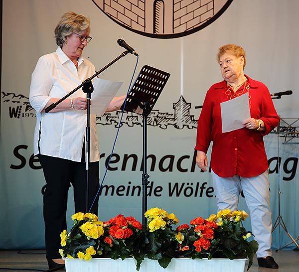 Den Anfang machten die Sieler Spatzen, die neben dem Hessenlied auch den Schlager "Mein kleiner grüner Kaktus" vortrugen. Als "Zwei echte Wölfersheimer Mädche" präsentierten Loni Konietzke und Inge Unverzagt einen kurzen Sketch mit Geschwätz aus dem Dorf. Der Harmonikaclub brachte die Zuschauer mit bekannten Melodien zum Mitsingen. Für Action auf der Bühne sorgten die Cheerleader der Drumband, das Kinderballett und das Funkenpärchen des Fanfahren- und Spielmannszuges Abteilung CCW. Nach einer kurzen Pause trat Pfarrer Wolfgang Kaiser mit eine kurzen Impuls an das Mikrofon und die Sieler Spatzen trugen weitere Lieder vor. Den Abschluss des Programms machten wieder Konietzke und Unverzagt als "Wölfersheimer Mädche" mit einem Liedvortrag.