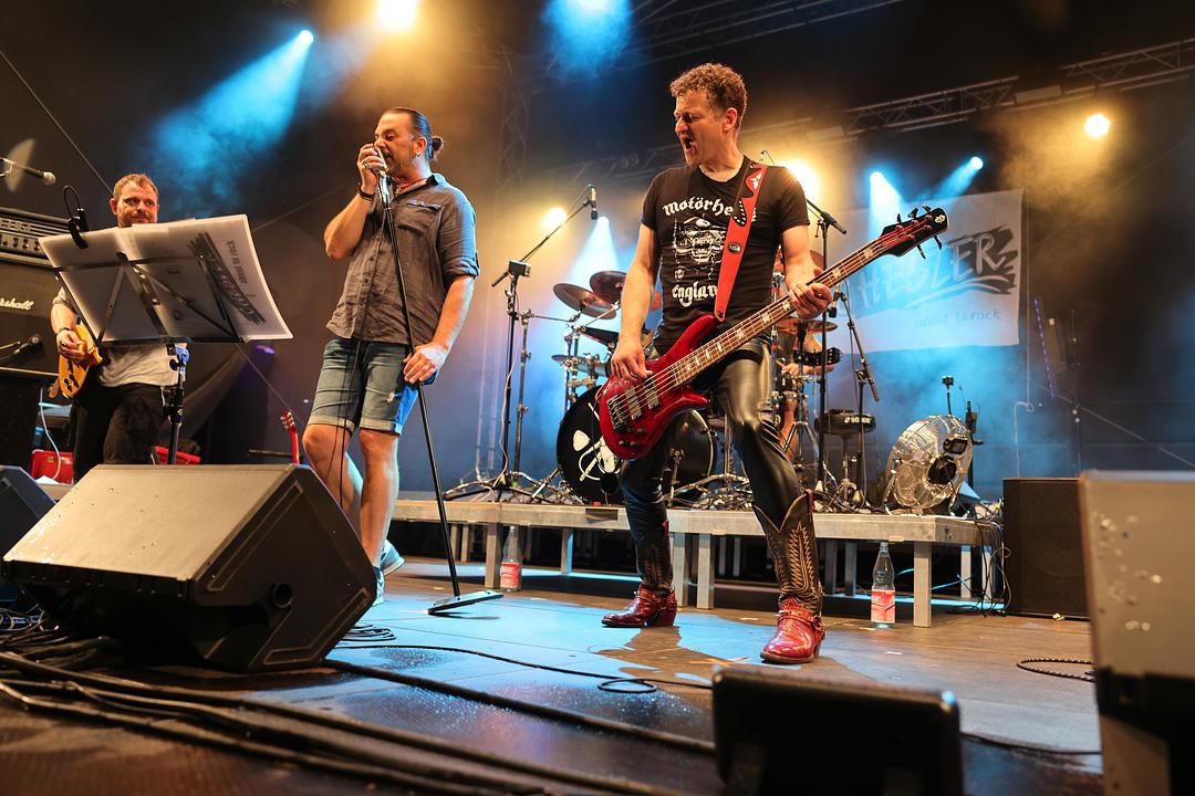 Am Montag stand die Band Jukebox22 auf der Bühne am Wölfersheimer See. Mit einer explosiven Mischung aus Klassikern und verborgenen Schätzen erweckte die Band Jukebox22 die Ära von Jerry Lee Lewis, Elvis Presley und Chuck Berry wieder zum Leben. Jukebox22 hat sich ganz der Musik aus der Blütezeit des Rock’n’Roll der 50er und 60er Jahre verschrieben. Die Band wurde Ende 2018 gegründet und hat sich seither im Rhein-Main-Gebiet sowie darüber hinaus einen Namen gemacht. Mit zeitlosen Klassikern bot Jukebox22 auch in Wölfersheim Musik für alle Generationen. Ihre ehrliche, erdige und energiegeladene Musik sorgte dafür, dass jeder Zuhörer auf seine Kosten kam und schnell das Tanzbein geschwungen wurde. Auf weitere Auftritte der Band in Wölfersheim darf man hoffen und gespannt sein.