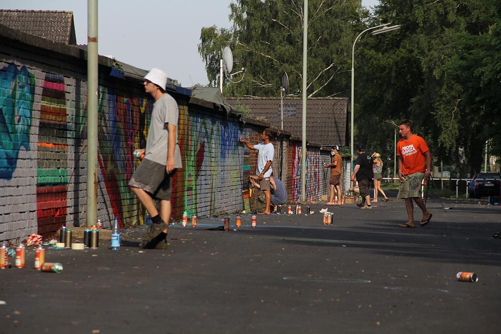 Mit dabei waren Benjamin Duquenne (Frankreich), Trevor (Belgien), Andrey Key Detail (Weißrussland), Julia Yu-baba (Weißrussland) und die deutschen Künstler Martin Bender, Hendryk von Busse, Danilo Halle, Nikki Holler, Andreas Wagner, Viktor Sobek und Lukas Koch. Die Motive beziehen sich thematisch auf Respekt und Vielfalt. Das Projekt wurde vom lokalen Aktionsplan BUNTerLEBEN gefördert. Die Künstler hatten einen großen Gestaltungspielraum um einen möglichst „vielseitigen“ Eindruck zu spiegeln. Von gesellschaftskritischen Bildern aus Kriesengebieten bis hin zu bunten abstrakten Formen ist fast alles vertreten. Gleichzeitig sind an der Wand verschiedene Entwicklungsstadien von Graffiti zu erkennen. Auf einer Infotafel soll nochmals auf die einzelnen Bilder eingegangen werden.