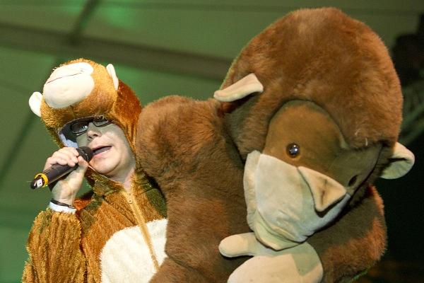 Gespielt wurden die „Hits“ des Duo Kunterbunt. Bekannte Lieder wie „Meine Biber haben Fieber“, „Zwei lange Schlangen“ oder „Sternenfänger“ sorgten für große Begeisterung. Aber auch der Titel „Eisenbahn, Eisenbahn“, bei dem sich ein langer Kinderzug über die Bühne bewegte, zog viele Kinder auf die Bühne. Beim „Schubidua-Tanz“ wurde einmal der ganze Körper in Schwung versetzt.