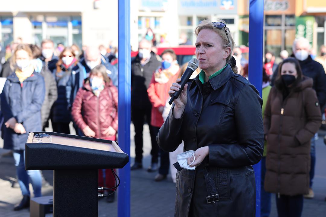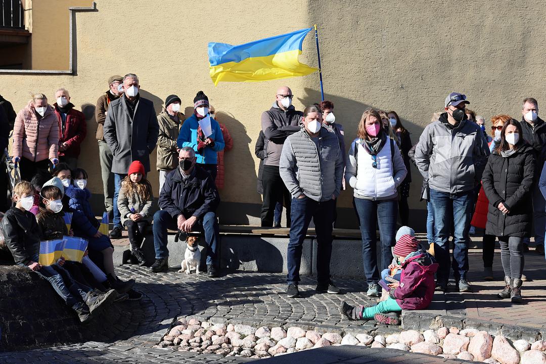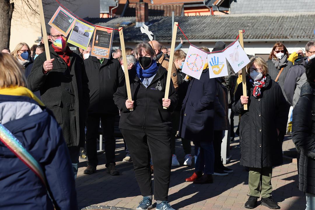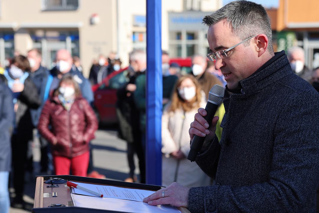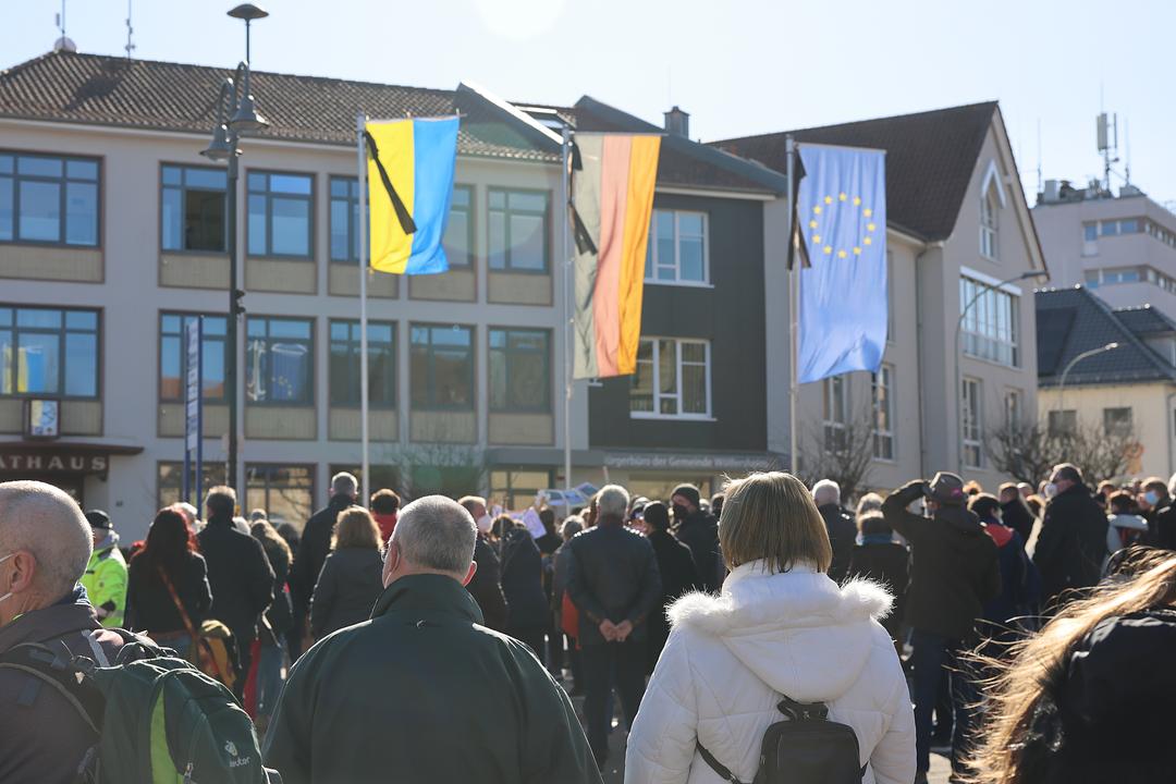 Als letzter Redner trat Bürgermeister Eike See an das Rednerpult. Europa müsse mehr denn je zusammen stehen. „Vladimir Putin hat das Völkerrecht eklatant gebrochen, er hat diesen Krieg gewollt, er hat ihn begonnen und es ist sein Krieg. Er führt ihn aber leider nicht alleine. Er marschiert mit Soldaten ein und er verwickelt Menschen in kämpferische Handlungen. Putin sind der Frieden und das Völkerrecht egal und er zerstört damit Familien, gesellschaftliche Strukturen und Menschenleben. Für die militärische Eskalation gibt es keine Rechtfertigung und keine Entschuldigung,“ so Bürgermeister See. Man fühle sich machtlos bis erstarrt. Abgeschlossen wurde die Kundgebung mit einer Schweigeminute für die Menschen in der Ukraine.