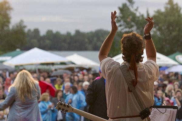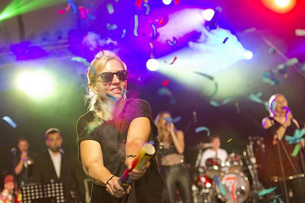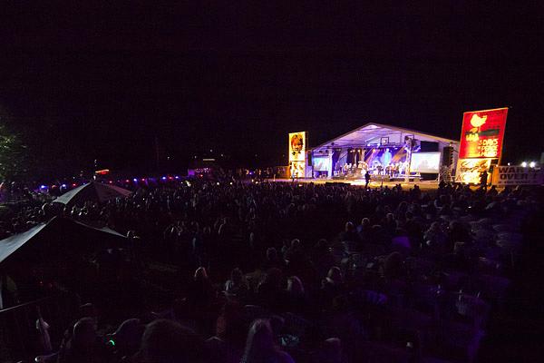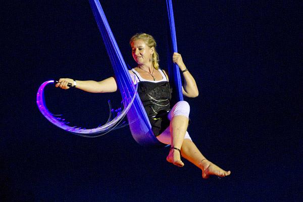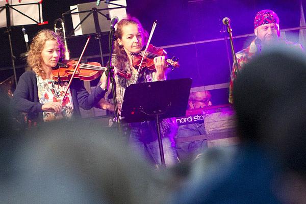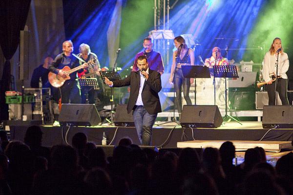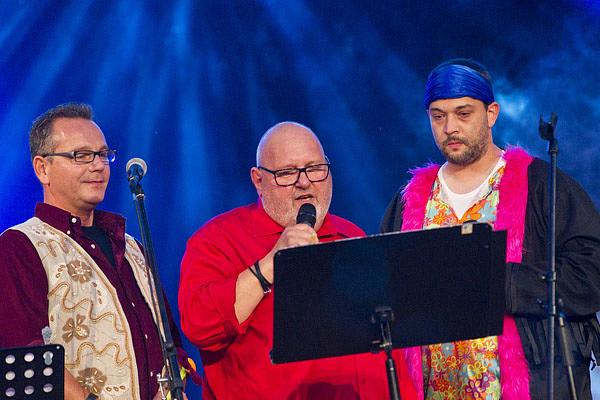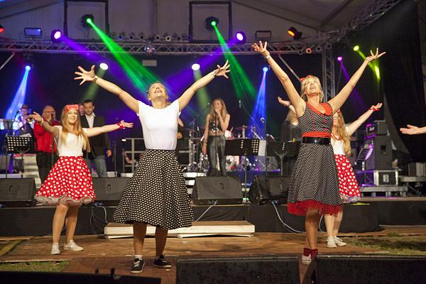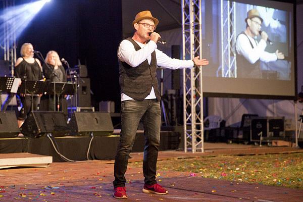 Es folgte ein gewohnt abwechslungsreiches Programm, das mit modernen Hits und Evergreens gespickt war. Einzelne Songs wechselten sich mit Medleys und Themenblöcken ab. Von Udo Lindenberg über Lady Gaga bis hin zu Kraftklub spiegelte das Programm auch die Vielseitigkeit der Musiker und Sänger wider. Wie üblich wechselte die Besetzung der Band von Song zu Song. Als Sängerinnen und Sänger mit dabei waren Bettina Skottke, Renate Gantz-Bopp, Nadine Schutt, Anja Knoll, Katrin Zerb, Patrick Eulenkamp, Alex Kunz, Karl-Ernst Pulkert, Thomas Gerlach und Sebastian Göbel. An den Gitarren wechselten sich Marcel Waldeck, Kai Knöpp, Heiko Schulz, Martin Schnur und Bernd Heinisch und am Bass Sascha Waldeck und Michael Bauer ab. Fast während des gesamten mehr als 5 Stunden langen Programms waren Schlagzeuger Thomas Bannert und Pianist Gerald Reutzel auf der Bühne. Abgerundet wurden einige der Songs erst durch die Hornsection, die aus Theo Langstrof und Jasmin Weinelt an der Trompete, Marco Eckhard am Saxophon und Ralf Kraus an der Posaune bestand. Elvira Janocha und Ruta Belzakaite an der Violine verliehen Medleys wie einem Abba Mix oder Auszügen aus Grease erst den letzten Schliff. Auch optisch warteten wie bei Wölfersheim Live üblich immer wieder Überraschungen. Zu Grease und Elvis eroberten Tänzerinnen die Bühne. Moni Stein schwebte in einem Tuch über den Köpfen des Publikums. Wölfersheim Live ist eine Veranstaltung, wie man sie selten findet. Unzählige Profis und Laien arbeiten unter der Regie von Bernd Heinisch daran, das Publikum jedes Mal aufs Neue zu überraschen. Nicht alles ist dabei perfekt, und das weiß auch das Publikum, das trotz Regen bis in die späten Abendstunden ausharrte und gemeinsam mit den Musikern die Leidenschaft zur Musik feierte.