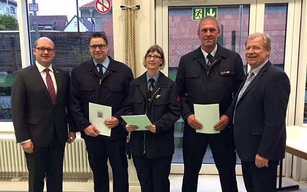Freiwillige Feuerwehr – Sie opfern Ihre Freizeit für unsere Sicherheit! Im Rahmen der jüngsten Sitzung der Gemeindevertretung holte Bürgermeister Rouven Kötter drei Ehrungen für aktive Feuerwehreinsatzkräfte nach.